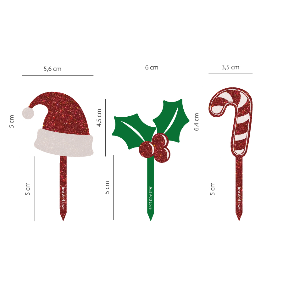 Topper de acrílico com espessura de 3mm, ideal para decoração de bolo rei, tronco de natal, cupcakes, bolos, sobremesas e outras especialidades de Natal.